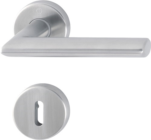 Rosettengrt.Stock.E1140Z/42KV/42KVS VA F69 rd.OB DIN L/R D/D HOPPE Innentür-Rosetten-Garnitur geprüft nach DIN EN 1906 (Gebrauchs-Kategorie Klasse 3) · Türgriffe mit Schnellstift-Verbindung (mit 8 mm Vollstift) für Türstärke 37-42 mm und Rückholfeder · Rosetten mit Stütznocken unsichtbar verschraubt · Drückerlänge bei Aluminium 132 mm, bei Edelstahl 131 mm · Anschlagrichtung DIN links / rechtsWeitere technische Eigenschaften:· Befestigungssystem: Schnellstift· Nockenabstand: 38mm