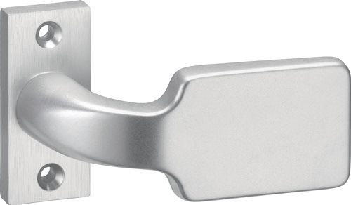 Profiltürknopf 1315/0000 Alu.F1 Aufnahme 8mm gekr.EDI für Rahmentüren · schräg, auf käntiger Rosette · ohne Stift · Schraublochabstand 50 mm · Kanten gerundet · Höhe 67 mm · Breite 30 mm · Stärke 10 mm · sichtbare Verschraubung · fest oder fest/drehbar (federnd gelagert) · DIN links / rechts · Lieferung ohne Stift und Schrauben Weitere technische Eigenschaften: · Schraublochabstand: 50mm · Befestigungssystem: sichtbare Verschraubung · Rosettenform: käntig · Rosetten-Breite: 30mm · Knopftiefe: 76mm · Anschlagrichtung: DIN links / rechts · Farb-Nr.: F1 · Rosetten-Höhe: 67mm