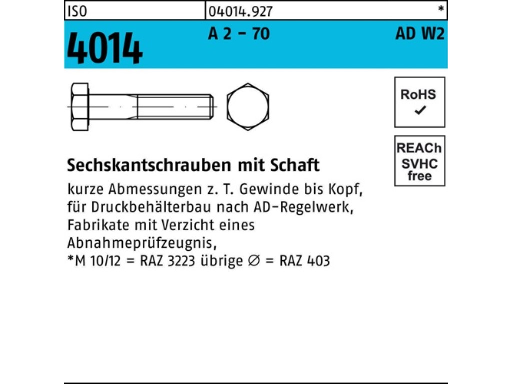 | Norm: | ISO 4014 m.Schaft |