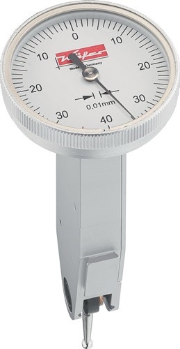 Fühlh.-Messger.K 32 0,8mm Abl.0,01mm KÄFER Genauigkeit nach DIN 2270 · automatische Umschaltung der Messrichtung · wesentliche Lagerstellen der Messwerke sind in präzisen Lochsteinen gelagert · Lagerung der Fühlhebelwelle in Präzisionskugellagern · Gehäuse verchromt · antimagnetische Anzeige (gewöhnliche Magnetfelder sind ohne Einfluss auf die Ablesung)· drei eingefräste Schwalbenschwanzführungen zur Aufnahme des Einspannschaftes · drehbare Strichskala · die Längenangaben der Messeinsätze (Messeinsatz-L. mm) verstehen sich bis Mitte Kugel Messeinsatz mit 2 mm HM-Kugel Messeinsatzgewinde M1,6 Weitere technische Eigenschaften: · Ausführung: Messeinsatz rückwärtig zum Ziffernblatt schwenkbar · prüfpflichtig: ja Lieferung mit Einspannschaft-Ø 8 mm h6 und Schlüssel · Kalibrierung auf Anfrage und gegen Aufpreis.