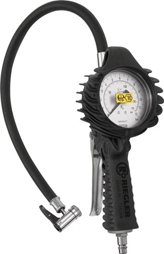 Handreifenfüllmesser Standardausf.m.Hebelstecker,geeicht DN 7,2 RIEGLER Standardausführung · robuster Standard-Handreifenfüllmesser mit vollgummierter Schutzhülle · Druckmanometer mit bar- und psi-Anzeige · Schlauchlänge: 50 cm · Schlauchanschluss G 1/4, drehbar Die Eichfrist beginnt mit dem Tag des Inverkehrbringens bzw. der Eichung. Sie endet (bei einer Eichfrist größer oder gleich 1 Jahr) mit dem Ende des Jahres, in dem die Frist rechnerisch endet.