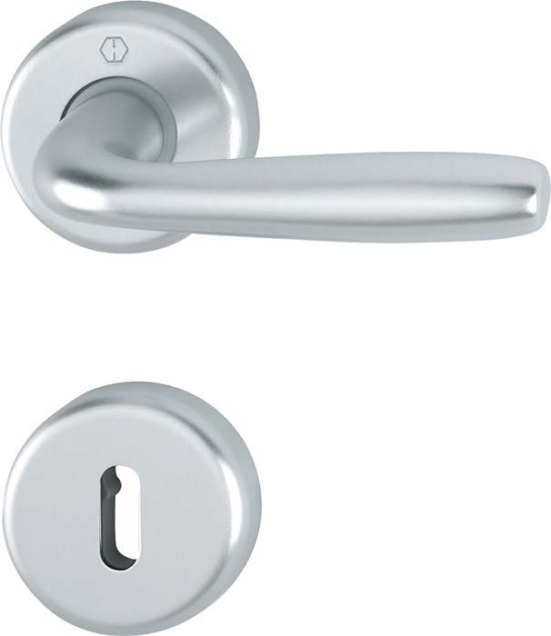 Rosettengrt.Maribor 1766/17KV/17KVS Alu.F1 rd.OB DIN L/R D/D HOPPE Innentür-Rosetten-Garnitur · Türgriffe fest/drehbar, Rückholfedern, wartungsfreie Gleitlager · HOPPE-Vollstift · Unterkonstruktion: Kunststoff, StütznockenBefestigung: verdeckt, durchgehend, wechselseitig, Mehrzweckschrauben HOPPE-Schnellmontage · Anschlagrichtung DIN links / rechts · für Türstärke 37-42 mmWeitere technische Eigenschaften:· Befestigungssystem: Vollstift· Nockenabstand: 38mm