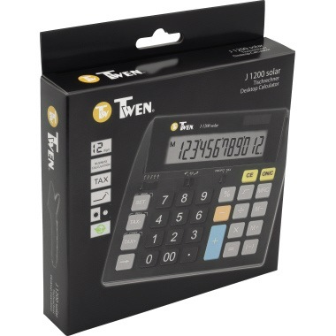 TWEN Tischrechner J-1200 12Zeichen Solar/Batterie Kompakte Maße · dennoch ein großes · gut ablesbares und verstellbares Display und eine angenehm zu bedienende Tastatur schließen sich nicht aus - die anzeigenden Tischrechner der Twen 1200-Modellreihe schaffen diesen Spagat mit Leichtigkeit. Ein ergonomisch geschwungenes Gehäusedesign · eine Soft-Touch-Tastatur mit angenehmen Griffgefühl und Tastengröße · ein großes und gut ablesbares und im Blickwinkel verstellbares Display · sowie ein sinnvoller und praxisgerechter Funktionsumfang sind weitere Vorteile Ihres neuen Tischrechners.