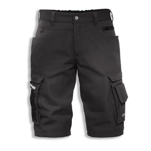 Bermuda Premium - uvex perfeXXion Modell: 3854 Art.-Nr.: 17202 Material: 65% Polyester, 35% Baumwolle, ca. 275 g/m² UV Schutzfaktor UPF 50+ Farbe: schiefer sehr robustes Material durch strapazierfähige Garne und besondere Gewebestruktur jeweils zwei multifunktionale Gesäß- und Oberschenkeltaschen inkl. Zollstock-, Handy- und Werkzeugtaschen sowie Stiftfächern und Hammerschlaufe eingehaltener Gummizug im hinteren Bund Reflexdetails OEKO-TEX® Standard 100 Größen: 23-32, 42-66, 90-110 Übergrößenzuschlag: ab Größe 56 bzw. 106 +10% Pflege: 60°C Wäsche, nicht Bleichen, Trockner: 1 Punkt, Bügeln: 2 Punkte, Reinigung mit Perchlorethylen, Industrielle Wäsche: geeignet