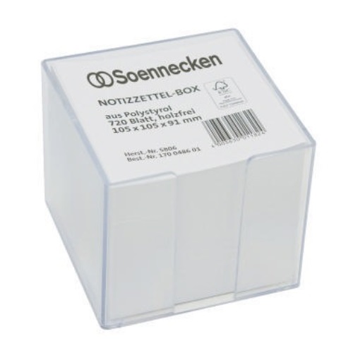 Soennecken Zettelbox 5806 105x105x91mm transparent +Inhalt Soennecken Zettelbox 10,5 x 10,5 x 9,1 cm (B x H x T) 9,7 x 9,7 x 8,2 cm (B x H x T) 720 Bl. gefüllt Kunststoff transparent