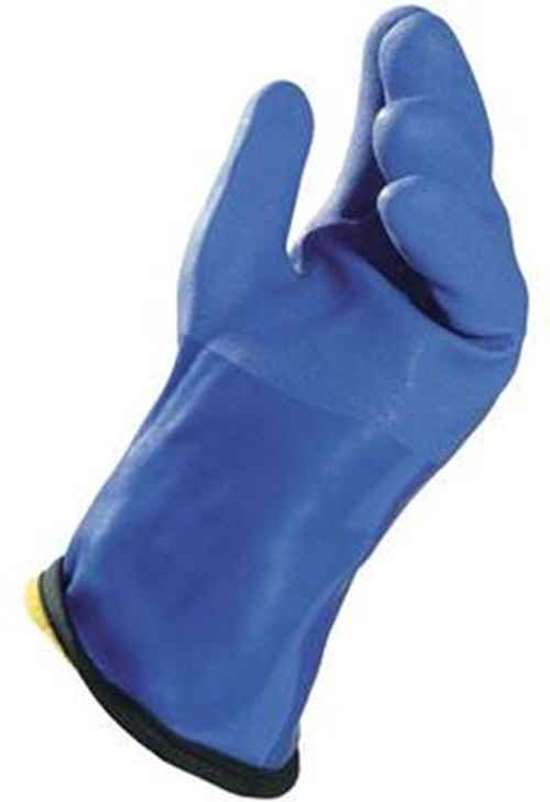 CAT IIISpezielle PVC-Mischung für den Einsatz bei extremer Kälte (bis -30 °C) bei Erhalt der Flexibilität. Handfläche gekörnt für mehr Griffsicherheit. Hoch beständig gegen Öle, Fette und Kohlenwasserstoffe. Sehr gute Isolierung. Angenehmer Tragekomfort.Norm: EN 388, EN 374, EN 511Farbe: BlauMaterial: PVC, Fleece-InnenstrickGrößen: 9, 10Länge: ca. 300 mmAnwendung: In sehr kalter Umgebung (-30°C) Fisch- und Hafenindustrie, Lagerhausarbeiten, Tätigkeiten in Skigebieten, LebensmittelindustrieSchutzklasse: Kat. IIIBeschaffenheit: Doppelter Jerseyträger mit Fleece, Beschichtung gekörnt