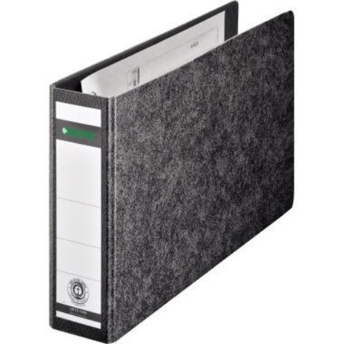 Leitz Ordner 10660000 DIN A5 quer 56mm Hartpappe schwarz Sonderformatordner mit 50 % weitere Mechaniköffnung für schnelleres und komfortableres Arbeiten. Mit aufgeklebtem Rückenschild. Ablegen auch auf der linken Seite möglich. 5 Jahre Garantie auf die Mechanik.