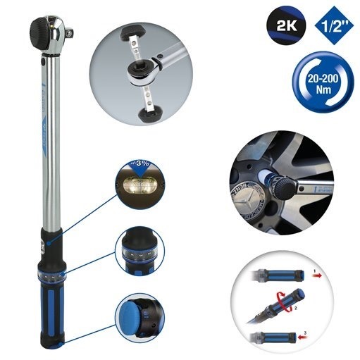 Brilliant Tools BT141901 1/2" DrehmoSchlüssel,20-200Nm,Drehknopf-Umsteckgenauer als DIN/ISO - Norm+/- 3% AuslösegenauigkeitFeineinstellungwiederholgenau und präzise bei mindestens 5.000 Lastwechselnfür den kontrollierten RechtsanzugLinksanzugssperre - unbegrenztes Lösemoment ohne DrehmomentfunktionDoppelskala in Nm und lbfft Teilung für präzise Einstellunginklusive fein teilbarer Nm Mikrometerskala für eine feine und präzise Einstellunggroßes Sichtfenster mit Lupenfunktion optimiert die Ablesbarkeitdeutlich hör- und fühlbare Drehmomentauslösung durch Kurzwegauslösungmit robustem 36-Zahn RatschenmechanismusEinstellen des Drehmoments schnell und sicher durch Drehen des Handgriffssichere Verriegelungsmöglichkeit am Handgriffergonomischer und handfreundlicher 2-Komponentengriff mit WeichzoneVierkantantrieb nach DIN 3120 - ISO 1174 mit Kugelarretierunginklusive Kalibrier-Konformitätserklärung nach DIN EN ISO 6789:2003 - rückführbar auf nationale NormaleMithilfe dieses BRILLIANT TOOLS Profi-Drehmomentschlüssels BT141901 lassen sich Schrauben und Muttern kontrolliert anziehen. Seine Einsatzmöglichkeiten sind sehr vielseitig. Die exakte Einstellung des gewünschten Drehmoments ist denkbar einfach und lässt sich sehr gut an der im Griff integrierten Skala ablesen. Auch die Feineinstellung, dank Mikrometerskala, ist hier möglich. Damit lassen sich Werte wie z.B. 84 Nm realisieren. Zum Einstellen muss nur die Verriegelung im Griff gelöst und dieser bis zum gewünschten Wert gedreht werden, anschließend wieder verriegeln. Durch den Drehmomentbereich von 20 - 200 Nm lassen sich verschiedenste Arbeiten an PKW oder Transporter erledigen. Der gut hör- und fühlbare Auslöse-Mechanismus, signalisiert Ihnen das Erreichen des eingestellten Drehmoments. Sein 1/2" Kopf kann umgesteckt werden und ist somit für Rechts- und Linksgewinde geeignet.Die Robustheit und Zuverlässigkeit dieses Profi-Drehmomentschlüssels hat sich über viele Jahre bei professionellen Mechanikern bewährt und ist dadurch ideal für Hobby-Schrauber mit sehr hohen Ansprüchen an ihr Werkzeug.