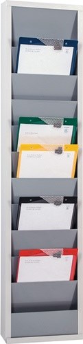 Werkstattplaner H1278xB315xT74 mm grau 1-reihig Stahlblech pulverbeschichtet · für Auftragstaschen oder Belege DIN A4 · Tafeln beliebig aneinander ansetzbar · Einstecktiefe 210 mm · Sichtrand 96 mm · Lieferung inkl. Befestigungsmaterial