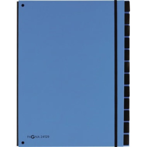 PAGNA Pultordner Trend 24129-13 12Fächer 3Schaulöcher hellblau Ideal zum Vorsortieren von Belegen · Unterlagen und Informationen.Ideal auch zum Terminieren von Vorgängen etc. Taben aus Polypropylen in schwarz. Mit verstärktem und dehnbarem Rücken.
