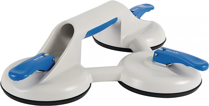 Saugheber Trgf.90kg Kopf-D.120mm 3 Köpfe Ku.VERIBOR® 3-Kopf-Kunststoff-Körper mit Längsgriff · Vakuumaufbau durch Umlegen der Kipphebel · 80% stärkere Tragkraft als der 2-Kopf-Saugheber · geeignet für alle Materialien mit glatten und gasdichten Oberflächen wie Glas, Kunststoffplatten, Blech, beschichtetes Holz, Marmor, Fliesen etc. · Gummischeiben auswechselbar · Tragrichtung: parallel