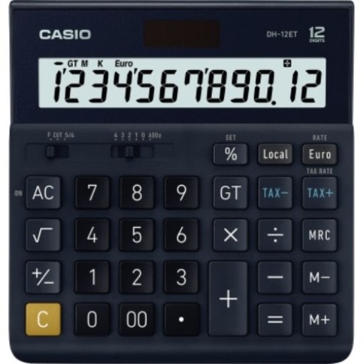 CASIO DH-12ET CASIO® Tischrechner DH-12ET 151 x 29 x 159 mm (B x H x T) Solar-En Großformatiger Tischrechner aus der CASIO EURO Reihe mit leicht zu bedienenden ergonomisch geformten großen Tasten.