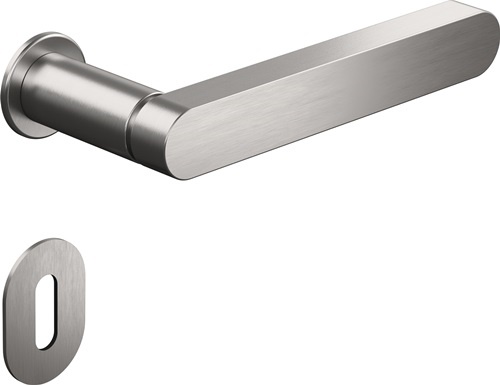 Rosettengrt.270XAM01.130 VA (1.4301) PZ-PZ HEWI Zimmergarnitur mit Schlüsselrosetten · mit flacher Drückerrosette, Abdeck-Kappe aus Edelstahl, Türdrücker Modell 271XAM in L-Form aus Edelstahl (1.4301), Vierkantstift 8 mm, für Österreich 8,5 mm, mit Trapezgewinde · Fixierung der Drücker in einem Einpresslager und einer Polyamid-Gleitlagerbuchse · mit Schlüsselrosette 306XAM, 32 x 47 mm · Montage der Einpressbuchsen mittels Montagemutter mit Trapezgewinde, SW 19, mit einem Ringschlüssel SW 19 · die Montage wird empfohlen an stumpfen wie auch gefälzten Wohnraum- und Innentüren mit HDF-Deckplatte und Mittellagen aus Röhrenspan- bzw. Vollspaneinlage oder hochwertiger Weitere technische Eigenschaften: · Farb-Nr.: XA