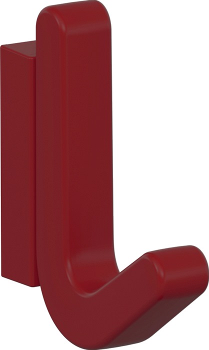 HEWI 477.94B010 33 Einzelhaken Serie 477 matt, elastisch Kunststoff (TPU) 33 rubinrot Höhe 68 mm elastisch · nachgebendes Material, weiche Haptik und abgerundete Kanten reduzieren Stoß- und Verletzungsgefahr · dient zum Aufhängen von Kleidungsstücken und anderen Utensilien · B 15,5 x H 68 x T 58 mm · aus Kunststoff (TPU) · Oberfläche matt · Belastungsempfehlung max. 5 kg · verdeckte Befestigung