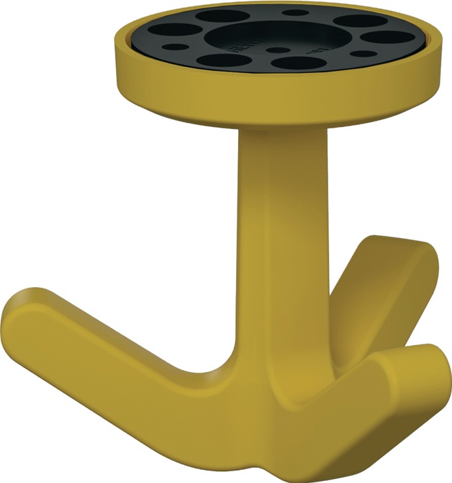 HEWI 477.94B030 18 Dreifachhaken Serie 477 matt, elastisch 18 senfgelb Höhe 69 mm Ø 51 mm elastisch · nachgebendes Material, weiche Haptik und abgerundete Kanten reduzieren Stoß- und Verletzungsgefahr · dient zum Aufhängen von Kleidungsstücken und anderen Utensilien · drehbarer Haken zum Aufschrauben von unten · Ø Rosette 51 mm · B 80 x H 69 mm · aus Kunststoff (TPU) · Oberfläche matt · Belastungsempfehlung max. 5 kg je Hakenteil · verdeckte Befestigung · TÜV Rheinland geprüft, Zertifizierungsnr. S 6013699