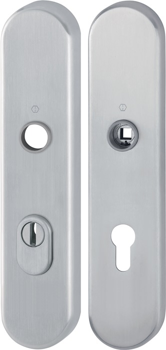 HOPPE 11980679 Langschildpaar E3332ZA/3310 matt F69 PZ 72 mm mit Zylinder-Abdeckung für Außen-/Wohnungsabschluss-Türen · zertifiziert nach DIN 18257 ES1, erfüllt die Anforderungen nach DIN EN 1906: 37-0142A (SK2) in Verbindung mit den passenden Türgriffen, Objekt-Garnitur · Gebrauchskategorie Klasse 3Lagerung: für Türgriffe lose, Rückholfeder rechts/links verwendbar, wartungsfreie GleitlagerVerbindung: HOPPE-Vollstift für HOPPE-Schnellstift (Lochteile)Zylinder-Abdeckung: gehärteter Stahl, für vorstehende Zylinderlänge 10-18 mmUnterkonstruktion: außen Stahl, innen Aluminium, StütznockenBefestigung: verdeckt, durchgehend, Gewindeschrauben M6Das Schutz-Langschild-Paar ist ausschließlich mit HOPPESchnellstift-Türgriff-Lochteilen kombinierbar und entspricht nur so den Anforderungen der Schutzklasse ES1 (SK2).Weitere technische Eigenschaften:· Befestigungsart: unsichtbare Verschraubung