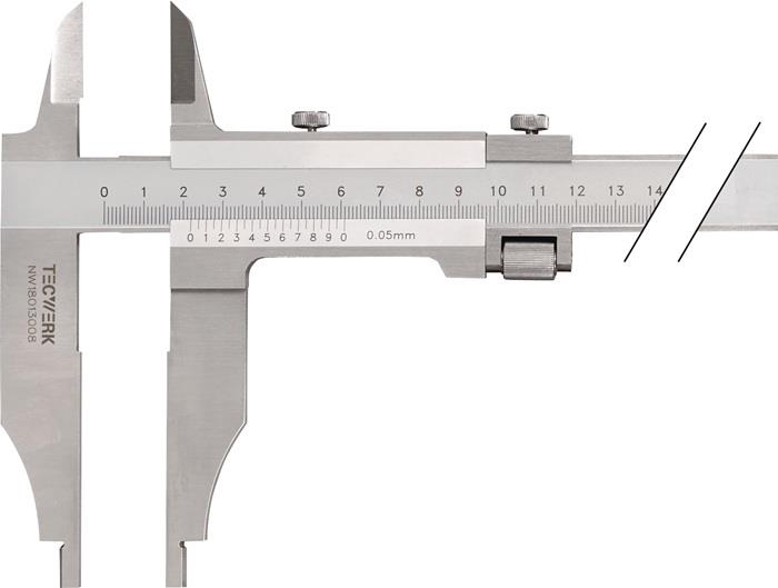 Produktinformationen "TECWERK 2000851136 Werkstattmessschieber DIN 862 300mm m.Spitzen Schnabel-L.90mm"