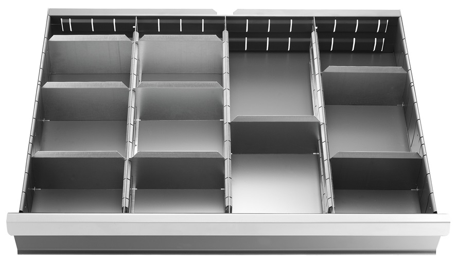 Facom 2930.C1 Einteilung fuer Schubfach 75 mm, 18-tlg Unter-/Einteilung für Schubfachhöhe 75 mm Satz, 18-tlg. Produktstärken: Einteilungssystem aus verzinktem Blech 3 Trennstege 4 Einteilungen: 100 mm 3 Einteilungen: 300 mm 8 Einteilungen: 200 mm