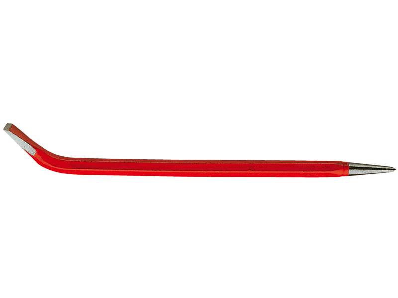 Facom 269 Hebeleisen, gebogen, Rundschaft Hebeleisen gebogen Rundschaft Schneide 27 mm Produktstärken: Geschmiedetes Modell, ein Ende mit einem Dorn, das andere mit einer breiten, feinen Trennkante, auf 45 HRc angelassen rot lackiert, Enden poliert, lackiert
