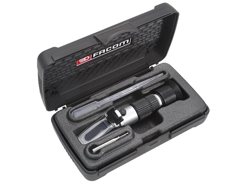 Facom 780B Refraktometer mit 4 Messskalen Refraktometer mit 4 Messskalen Produktstärken: Vier Messskalen: Adblue, Kühlflüssigkeit, Batteriesäure, Scheibenwaschmittel Für Euro 6-Dieselmotoren geeignet Misst die Harnstoffkonzentration des benutzten AdBlue Genaue, zuverlässige und präzise Informationen Abmessungen (L x B x H): 700 x 235 x 70 mm