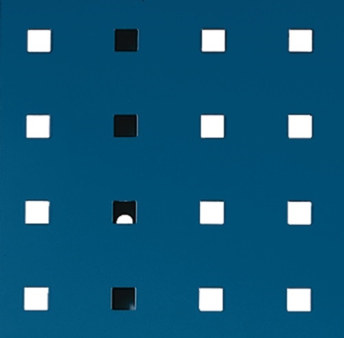 Lochplatte B457xL990mm enzianblau BOTT symmetrisch perforiert · aus 0,9 mm starkem Stahlblech · Lochabstand 38,1 mm · Lochgröße 9,2 x 9,2 mm · besonders stabil durch an der Rückseite angebrachte Versteifungen · Oberfläche pulverbeschichtet · Arretierung mit Kunststoffclip: Montage des Zubehörs ohne Werkzeuge Weitere technische Eigenschaften: · Lochabstand: 38,1mm · Plattenstärke: 0,9mm