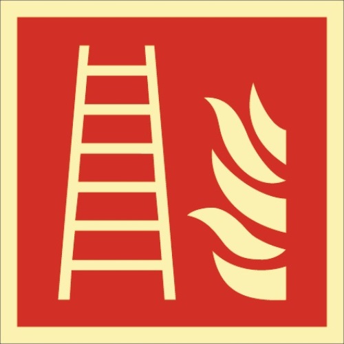 Brandschutzzeichen DIN EN ISO 7010 L148xB148mm Leiter Folie selbstklebende Folie · Symbol und Lichtkante langnachleuchtend · nach neue ASR A1.3/DIN EN ISO 7010 und DIN 67510 · Feuerleiter Weitere technische Eigenschaften: · Farbe: rot/weiß