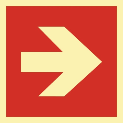 Brandschutzzeichen DIN EN ISO 7010 L148xB148mm Pfeil ger.Ku. Kunststoffschild · Symbol und Lichtkante langnachleuchtend · nach neuer ASR A1.3/DIN EN ISO 7010 und DIN 67510 Dieser Richtungspfeil darf nur in Verbindung mit einem weiteren Brandschutzzeichen eingesetzt werden · Richtungsangabe Weitere technische Eigenschaften: · Farbe: rot/weiß
