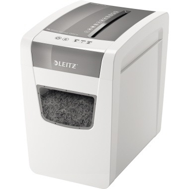 Leitz Aktenvernichter IQ Slim Home Office 80010000 Durch das kompakte · schlanke Format nimmt der stylische Aktenvernichter nur wenig Platz ein und eignet sich somit ideal fürs Home Office. Das Gerät ist dank Touch Control und Anti-Papierstau-Technologie leicht zu bedienen. Die Sicherheitsstufe bietet hohe Sicherheit auch bei sensiblen Daten. Flüsterleise! Einsatzbar auch in ruhigen Arbeitsumgebungen. Wurden zu viele Seiten auf einmal eingelegt · stoppt das Gerät und führt das Papier automatisch zurück. Kann 6 Minuten lang im Dauerbetrieb eingesetzt werden - ideal für den gelegentlichen Gebrauch. Wenn das Gerät abkühlen muss · leuchtet ein LED-Signal auf. Sichere Sperrfunktion ! Das Gerät kann somit nicht unbefugt benutzt werden. 1 zusätzliches Jahr Garantie bei Registrierung auf www.Leitz.com.
