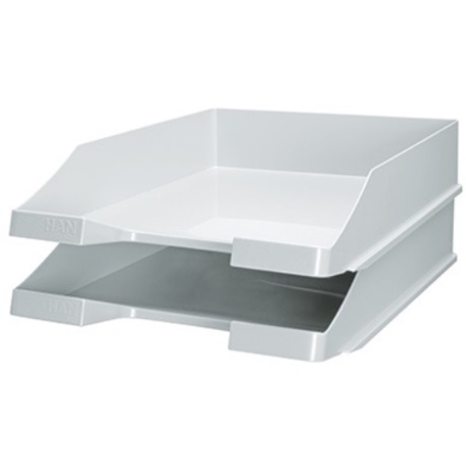 HAN 1027-X-11 HAN Briefablage KLASSIK DIN A4 DIN C4 Polystyrol Farbe: lichtgrau Die klassische Briefablage in zeitgemäßem Design. In hochglänzender Optik. Solider und langlebiger Ordnungshelfer für jedes Büro. Hat Klasse · zeigt Klasse · ist klasse! Senkrecht oder versetzt stapelbar. Mit breitem Greifausschnitt für leichte Orientierung und optimalen Zugriff auf die Unterlagen. Die leicht angeschrägte Vorderfront der Briefablage verhindert ein Herausrutschen der Dokumente. Kompatibel zu allen gängigen Briefablagen.