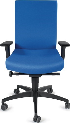 Bürodrehstuhl Synchrontechnik azurblau 400-520mm m.Armlehnen Trgf.110kg DAUPHIN mit Synchrontechnik (mit Armlehnen) · für überwiegend sitzende Tätigkeiten · stabiles Kunststofffußkreuz, schwarz · seitliche Einstellung des Rückenlehnengegendrucks im Sitzen mittels Handrad · hohe Polsterrückenlehne · Armlehnen höhen- und breitenverstellbar, mit PU-Auflage · spezieller Bandscheibensitz für eine ergonomische Sitzposition und eine perfekte Druckverteilung · Polster 100 % Polyester · Sitzfläche B 470 x T 380 mm · Lehnenhöhe 610-680 mm · Universallrollen für weiche und harte Böden Lieferung erfolgt zerlegt