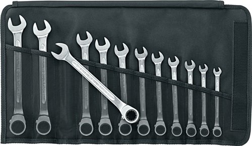 Maulringratschenschlüsselsatz 17/12 12-tlg.SW 8-19mm umschaltb.STAHLWILLE mit Umschaltung · Chrom-Alloy-Stahl · verchromt · Maulstellung 15°, Ringseite 15° abgewinkelt · 72 Zähne · Inhalt: 4000 826 075 je 1 Knarren-Ring-Maulschlüssel Gr. 8 / 10 / 13 / 17 / 19 mm 4000 826 076 je 1 Knarren-Ring-Maulschlüssel Gr. 8 / 9 / 10 / 11 / 12 / 13 / 14 / 15 / 16 / 17 / 18 / 19 mm Weitere technische Eigenschaften: · Zähne: 72 · Verpackung: Rolltasche · Material: Chrom-Alloy-Stahl · Schlüsselweiten: 8-19mm Lieferung in Rolltasche aus Textilmaterial mit Klettverschluss