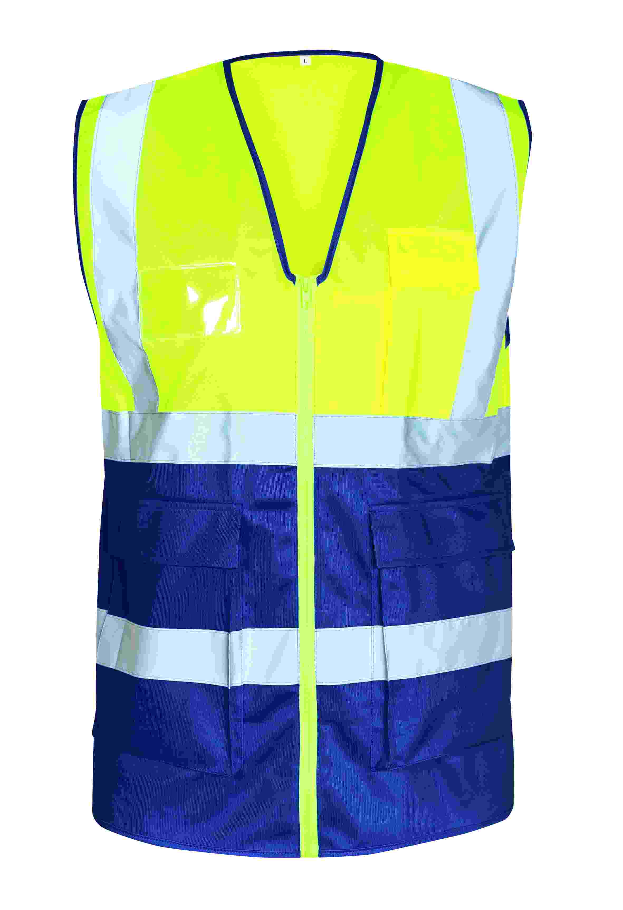 BERTHEL WARNSCHUTZWESTE GELB/MARINE SAFESTYLE, EN ISO 20471/1, EN ISO 13688 Gr.XXLNorm: EN ISO 20471 Klasse 1EN ISO 13688Obermaterial: 100% PolyesterFarbe: fluoreszierend gelb / marineGrößen: S-XXXXL mit Schulterreflex mit robustem Front-Reißverschluss einzeln im PE-Beutel verpacktTaschen: 1 Brusttaschenkombination links mit Handytasche und Stifttaschen 1 Ausweistasche 2 2-Wege Hüfttaschen