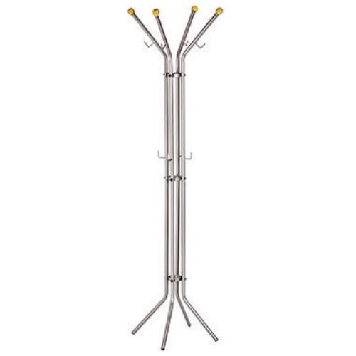 ALCO Garderobenständer 2800 52x180x52cm silber Standgarderobe aus Metall mit Knöpfen aus hellem Holz und weiteren Kleiderhaken.