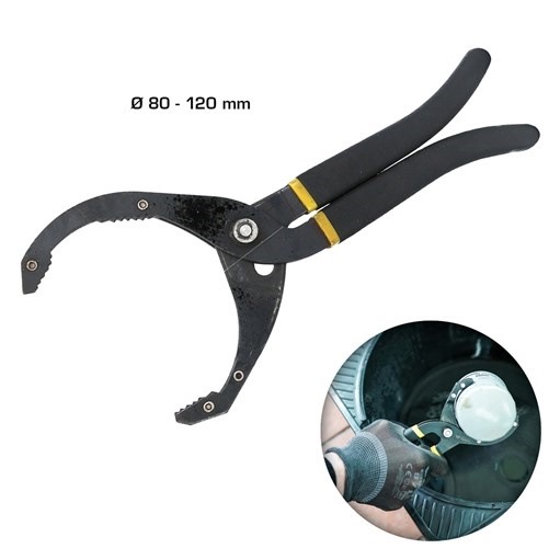 Brilliant Tools BT711004 Universal-ÖlfilterschlüsselSpannbereich von 80 mm 12 cmDer BRILLIANT TOOLS Universal-Ölfilterschlüssel BT711004 ermöglicht Ihnen das professionelle und einfache Wechseln von Öl und Ölfilter. Durch die Haltezacken ist ein sicheres Lösen möglich. Mit dem Spannbereich von 80 mm 12 cm ist er für große und kleine Filter geeignet. Der Ölfilterschlüssel hat gummierte Griffe und bietet dadurch sicheren Halt.