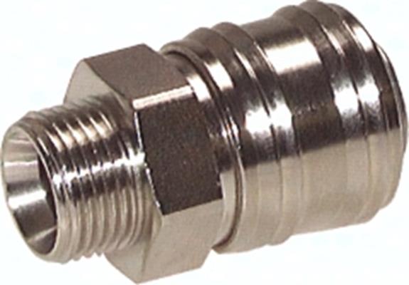 Kupplungsdose (NW7,2) G 3/8'( AG), MS vernickelt KDG 38 NW7 MSV Werkstoffe:Geh?use: Messing, Messing vernickelt, Stahl geh?rtet, 1.4305, Dichtung: NBR (Edelstahl: Viton)Temperaturbereich:-20?C bis max. +100?C (Edelstahl: -15?C bis max. +200?C, Kunststoffh?lse max. +80?C)Betriebsdruck:0 - 35 bar sowie Grobvakuum, CEJN-Kupplungen: 0 - 16 barDurchfluss***:Bolzenverriegelung: 1100 l/min (Option -BA: 800 l/min), Kugelverriegelung: 1800 l/min, CEJN-Kupplung: 2100 l/min, Kugelverriegelung/Kunststoffh?lse: 2100 l/min***6 bar Eingangsdruck, 0,5 bar DruckdifferenzAchtung:Nur folgende Paarungen von Kupplungsdose und Kupplungsstecker sind m?glich:Kupplungsdose absperrend BA mit Kupplungsstecker ohne VentilKupplungsdose absperrend BA mit Kupplungsstecker absperrend BAKompatibel zu**:Rectus (25, 26, 1600, 1625), TEMA (1600), CEJN (320), JWL (520, 530, 560), Legris (25, 26), Parker (PE, PEF), Prevost (E ... 07) und viele andere deutsche Fabrikate**Namen und Bezeichnungen sind z.T. eingetragene Warenzeichen der jeweiligen Hersteller.Optional:Verwendung f?r Stecker beidseitig absperrend -BA, NPT-Gewinde -NPT*SW 22 mit PTFE-beschichtetem G-Gewinde, optional mit SW 24 und unverlierbarem Dichtring: KDG 12 NW7-SW24