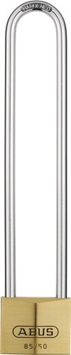 Zylindervorhangschloss 85/50HB200 Schlosskörper-B.50mm MS versch.-schl.ABUS Messingschloss, korrosionsbeständig und widerstandsfähig durch doppelte Verriegelung (ab 30 mm) sowie Bügel aus gehärtetem Stahl · Präzisions-Stiftzylinder mit Pilzkopfstiften · parazentrisches Schlüsselprofil für erhöhten Manipulationsschutz · automatisch verriegelnd: Verriegelung ohne Schlüssel durch Herunterdrücken des Bügels Weitere technische Eigenschaften: · Ergänzung: mit hohem Bügel