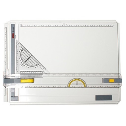 ARISTO AR7033 Aristo Zeichenplatte Geo Board DIN A3 Kunststoff weiß Die Profi-Zeichenplatte · die Basis für den Techniker von morgen. Dauergleitprofil der Zeichenschiene. ?L?-System ermöglicht auch im unteren Blattbereich das Zeichnen oberhalb der Schiene. Ergonomisch geformter Griff mit ?Stop-and-Go?-Mechanik und Freilaufschaltung. Rutschsicherungen an der Plattenunterseite eingegossen. Magnetklemmschiene mit Sichtfenstern zur Kontrolle des Blattanschlages. Integrierte Zirkelabgreifteilung zum schnellen Einstellen von Radien.