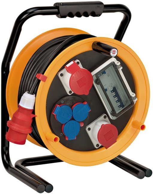 Brennenstuhl 1319250 Brobusta 380 CEE 25m H07RN-F5G4.0 Brobusta 380 CEE 2 FI Kabeltrommel für den ständigen Einsatz im Außenbereich IP44 (Kabeltrommel 25m, mit FI-Schutz, Made in Germany)neuArtikelnummer1319250EAN4007123680153 Kabeltrommel auf besonders stabilem Stahlrohrgestell mit 25m RN-Kabel (H07RN-F 5G4,0) eignet sich ideal für den ständigen Einsatz im Freien, IP44 Kabeltrommel mit CEE-Stecker (400V/32A 5-polig), 2 CEE-Steckdosen (400V, 32A 5-polig / 400V, 16A 5-polig) und 3 spritzwassergeschützten Schutzkontakt-Steckdosen (230V) Kabeltrommel mit RN-Kabel ist für erschwerte Baubedingungen nach VDE 0100 Teil 704 zugelassen Kabeltrommel mit 4-poliger Sicherheitsabschaltung und Überhitzungsschutz - außerdem mit FI-Personenschutz-Schalter 30 mA (1 Sicherheits-Automat 400V/16A, 1 Sicherheits-Automat 230V/16A) Brobusta CEE 2 FI IP44 Kabeltrommel mit 25m Kabellänge mit Klapp-Drehgriff für komfortables Aufrollen