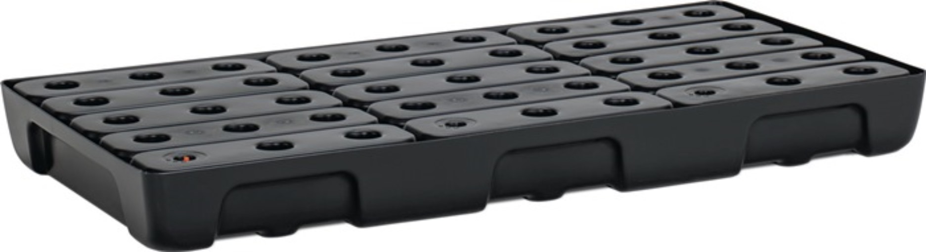Regalwanne 27l L976xB495xH95mm PE m.PE-Rost u.Leckanzeiger CEMO für Kleingebinde · zur sicheren und vorschriftsmäßigen Lagerung gewässergefährdenden Flüssigkeiten der GHS-Kategorien 1-4 · aus HD-Polyethylen · sehr beständig gegen Laugen, Öle und Säuren · mit PE-Rost · stapelbar · konzipiert für verschiedene Regaltiefe