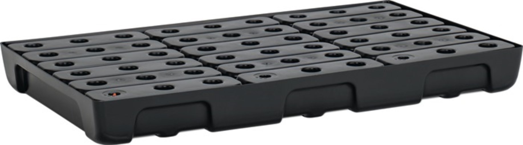 Regalwanne 33l L976xB595xH95mm PE m.PE-Rost u.Leckanzeiger CEMO für Kleingebinde · zur sicheren und vorschriftsmäßigen Lagerung gewässergefährdenden Flüssigkeiten der GHS-Kategorien 1-4 · aus HD-Polyethylen · sehr beständig gegen Laugen, Öle und Säuren · mit PE-Rost · stapelbar · konzipiert für verschiedene Regaltiefe