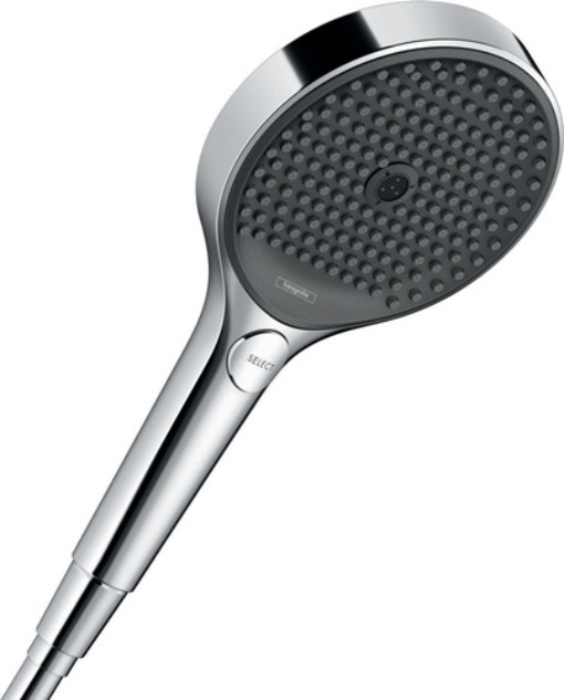 HG Handbrause RAINFINITY 130 3jet chrom Brausekopfgröße 130 mm · Strahlartenumstellung durch Select-Taste · Strahlart PowderRain · Intense PowderRain · MonoRain · Durchflussmenge bei 3 bar 10,6 l/min · mit innenliegender Wasserführung · ausspülbares Schmutzfangsieb · Anschlussgewinde G 1/2" · A