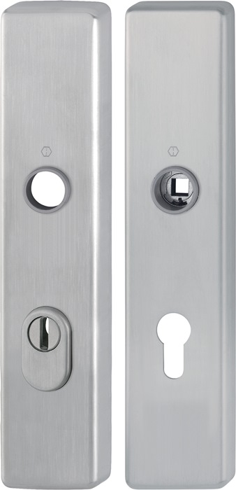 HOPPE E2222ZA/2210 Langschildpaar E2222ZA/2210 matt F69 PZ 72 mm mit Zylinder-Abdeckung für Außen-/Wohnungsabschluss-Türen · zertifiziert nach DIN 18257 ES1, erfüllt die Anforderungen nach DIN EN 1906: 37-0142A (SK2) in Verbindung mit den passenden Türgriffen, Objekt-Garnitur · Gebrauchskategorie Klasse 3 Lagerung: für Türgriffe lose, Rückholfeder rechts/links verwendbar, wartungsfreie GleitlagerVerbindung: HOPPE-Vollstift für HOPPE-Schnellstift (Lochteile)Zylinder-Abdeckung: gehärteter Stahl, für vorstehende Zylinderlänge 10-18 mmUnterkonstruktion: außen Stahl, innen Aluminium, StütznockenBefestigung: verdeckt, durchgehend, Gewindeschrauben M6Das Schutz-Langschild-Paar ist ausschließlich mit HOPPESchnellstift-Türgriff-Lochteilen kombinierbar und entspricht nur so den Anforderungen der Schutzklasse ES1 (SK2).Weitere technische Eigenschaften:· Befestigungsart: unsichtbare Verschraubung