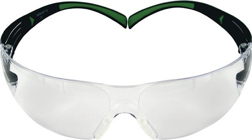 Schutzbrille SecureFit-SF400 EN 166,EN 170 Bügel schwarz grün,Scheibe klar EN 166 · EN170 (AS/AF, UV), durch die 3M Schläfendruckverteilungstechnologie passt sich das Modell 400 ebenso natürlich den verschiedensten Kopfgrößen und -formen an - zusätzlich gepolsterte Bügelenden und weiche, einstellbare Nasenbügel sorgen für einen