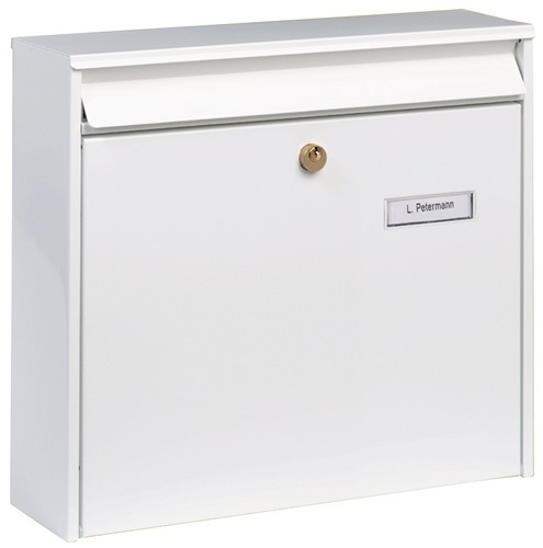 Briefkasten Potsdam 877 W H.322mm B.362mm T.100mm weiß STA DIN C4 BURG-WÄCHTER großer Anlagenkasten im Querformat · mit Fronteinwurf · aus verzinktem Stahlblech · nach EN 13724 · Einwurf Format: C4 · weiß Weitere technische Eigenschaften: · Rückschlitz: ohne