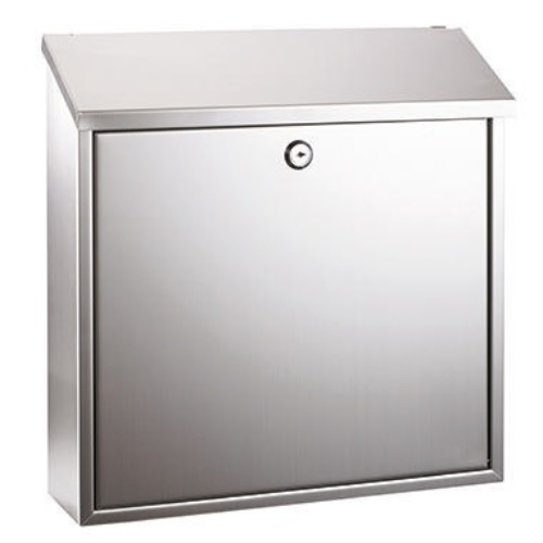 ALCO Briefkästen edelstahl Abdeck ung oben 36x36x10cm ROSTFREI Modern und geräumig. Mit aufklappbarem Regendach. Drehzylinderschloss mit 2 Schlüsseln.
