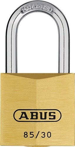 Zylindervorhangschloss 85/30HB24 gl Schlosskörper-B.30mm MS gl.0402 ABUS Messingschloss, korrosionsbeständig und widerstandsfähig durch doppelte Verriegelung (ab 30 mm) sowie Bügel aus gehärtetem Stahl · Präzisions-Stiftzylinder mit Pilzkopfstiften · parazentrisches Schlüsselprofil für erhöhten Manipulationsschutz · automatisch verriegelnd: Verriegelung ohne Schlüssel durch Herunterdrücken des Bügels Weitere technische Eigenschaften: · Ergänzung: mit hohem Bügel