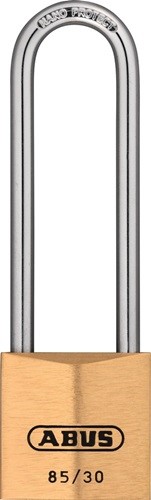 Zylindervorhangschloss 85/30HB65 Schlosskörper-B.30mm MS versch.-schl.ABUS Messingschloss, korrosionsbeständig und widerstandsfähig durch doppelte Verriegelung (ab 30 mm) sowie Bügel aus gehärtetem Stahl · Präzisions-Stiftzylinder mit Pilzkopfstiften · parazentrisches Schlüsselprofil für erhöhten Manipulationsschutz · automatisch verriegelnd: Verriegelung ohne Schlüssel durch Herunterdrücken des Bügels Weitere technische Eigenschaften: · Ergänzung: mit hohem Bügel