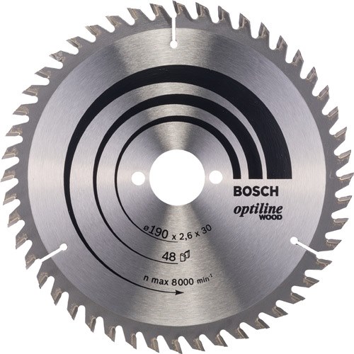 Kreissägeblatt Optiline Wood AD 190mm Z.48 WZ Bohr.30mm Schnitt-B.2,6mm Optiline Wood · hartmetallbestückt · SK5 Stahl · gehärtet (> 40 HRC) · Körper- und Dehnungsschlitze