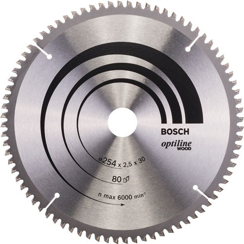 Kreissägeblatt Optiline Wood AD 254mm Z.80 WZ/N Bohr.30mm Schnitt-B.2,5mm Kreissägeblatt Optiline Wood für Kapp- und Gehrungssägen. Außendurchmesser: 254 mm · Bohrung: 30 mm · Schnittbreite: 2,5 mm · Zähnezahl: 80 · Zahnform: WZ Negativ. Das präzise Blatt für den Qualitätsschnitt in allen Holzarten.