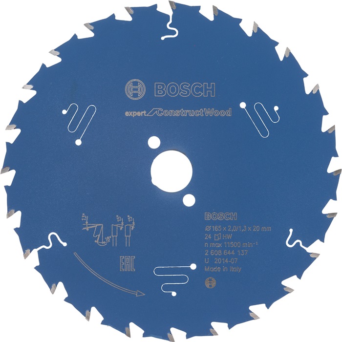 Kreissägeblatt AD 190mm Z.24 WZ Bohr.30mm Schnitt-B.2mm HM BOSCH Expert for Construct Wood für Tauch- und Handkreissägen · das spezielle Zahndesign und die breite Abstützung im Zahnrücken sorgen für eine hohe Widerstandskraft und schneiden Baustellenholz mit Fremdkörpern wie Nägel und Betonreste · auch geeignet zum Sch